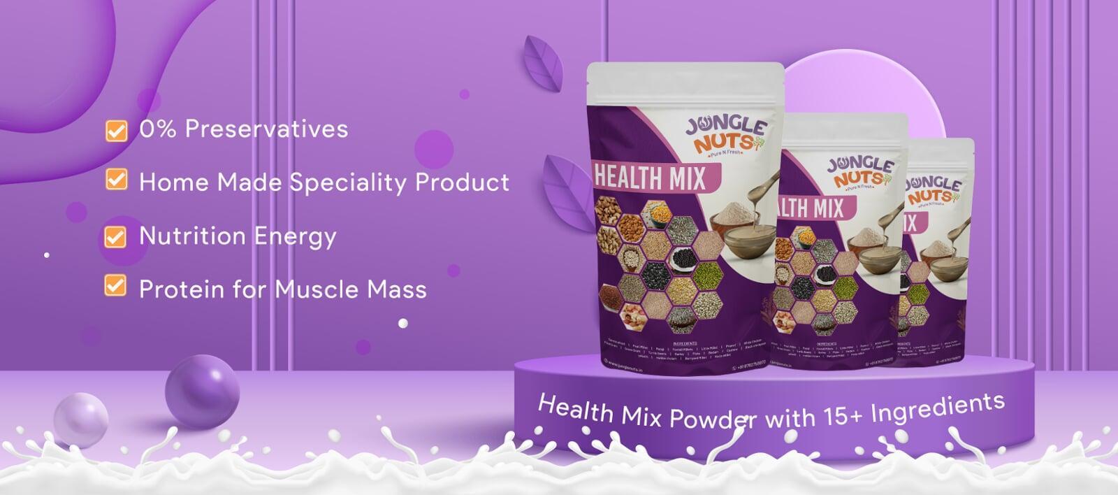 Health mix powder is a unique powder prepared by combining many healthy products like nuts and grains, millet and pulses, etc. It contains most nutrient groups, such as carbohydrates, proteins and vitamins essential for the body. Consuming this powder boosts your strength and helps you be physically healthy. Simply mix health mix powder with milk or water to prepare a nutritious drink.